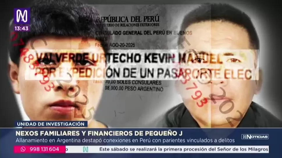 Otro hilo conductor en este caso es este ticket de trámite ante el Consulado General del Perú en Buenos Aires, del 20 de agosto último, por expedición de un pasaporte electrónico a nombre de Kevin Valverde Urtecho, hijo de Manuel David Valverde Rodríguez, tío del "Pequeño J", quien en enero de 2020 fue denunciado en Trujillo por disparar contra un ciudadano, al que no logró matar, tras lo cual le propinó un golpe en la cabeza con la cacha del arma antes de fugar.