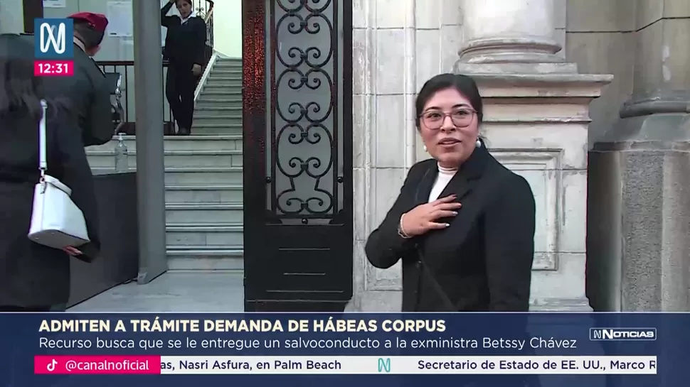 El Poder Judicial admitió a trámite una demanda de hábeas corpus interpuesta a favor de la exministra Betssy Chávez, con el objetivo de ordenar la entrega de un salvoconducto. Según indicó el diario El Comercio, el recurso legal busca facilitar la salida del país de la exfuncionaria, quien se encuentra actualmente bajo una condición jurídica particular.