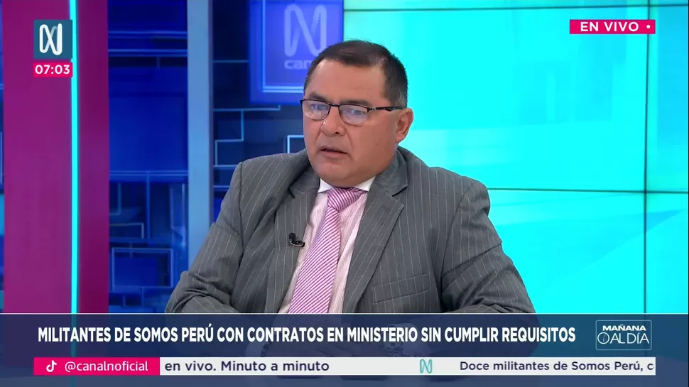 El exprocurador anticorrupción Alex Guerrero se refirió a las implicancias legales del caso y señaló que la afiliación a un partido político, como Somos Perú, no constituye por sí misma un impedimento para contratar con el Estado.