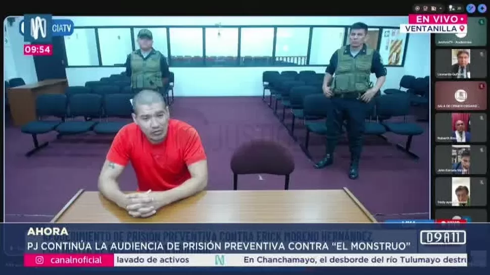 Erick Moreno, conocido como alias “El Monstruo”, brindó declaraciones ante el Poder Judicial durante la audiencia en la que se evalúa el pedido fiscal de 36 meses de prisión preventiva en su contra. El acusado se encuentra recluido en un penal de máxima seguridad tras su captura en Paraguay.
