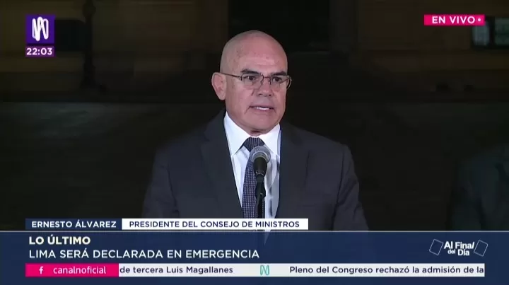 Ernesto Álvarez, titular de PCM, afirmó que la declaratoria en Lima Metropolitana vendrá acompañada por un paquete de medidas concretas y no descartó la implementación del toque de queda para combatir la criminalidad.