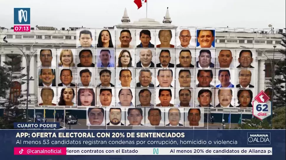 Una investigación de Cuarto Poder reveló que 53 postulantes de Alianza Para el Progreso cuentan con sentencias firmes por corrupción, homicidio culposo y violencia familiar. Pese al discurso anticorrupción de César Acuña, el partido mantiene a estos candidatos en carrera