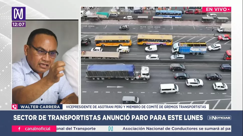 Walter Carrera, El vicepresidente de Asotrani Perú, anunció que no participará del paro convocado para mañana, aunque evalúa sumarse a una movilización nacional en octubre junto a otros colectivos del sector