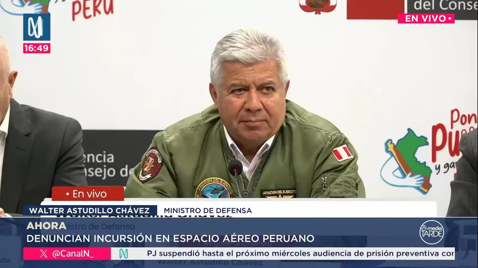 El ministro de Defensa, Walter Astudillo, denunció que una aeronave militar colombiana ingresó a baja altura en el espacio aéreo peruano, hecho que calificó como una “violación a nuestra soberanía”.