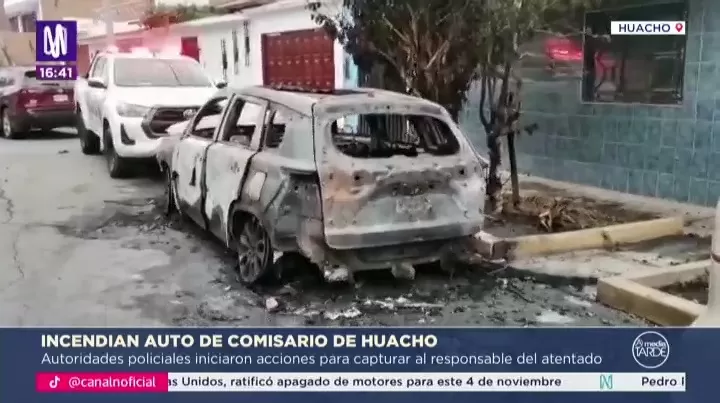 El comisario de Huacho, comandante PNP Miguel Ángel Castro Castillo, fue víctima de un atentado en su vivienda de la urbanización Los Sauces, cuando un desconocido incendió su camioneta particular en la madrugada. Según imágenes de cámaras de seguridad, un sujeto encapuchado se acercó al vehículo, roció un líquido inflamable y le prendió fuego antes de escapar en dirección desconocida.