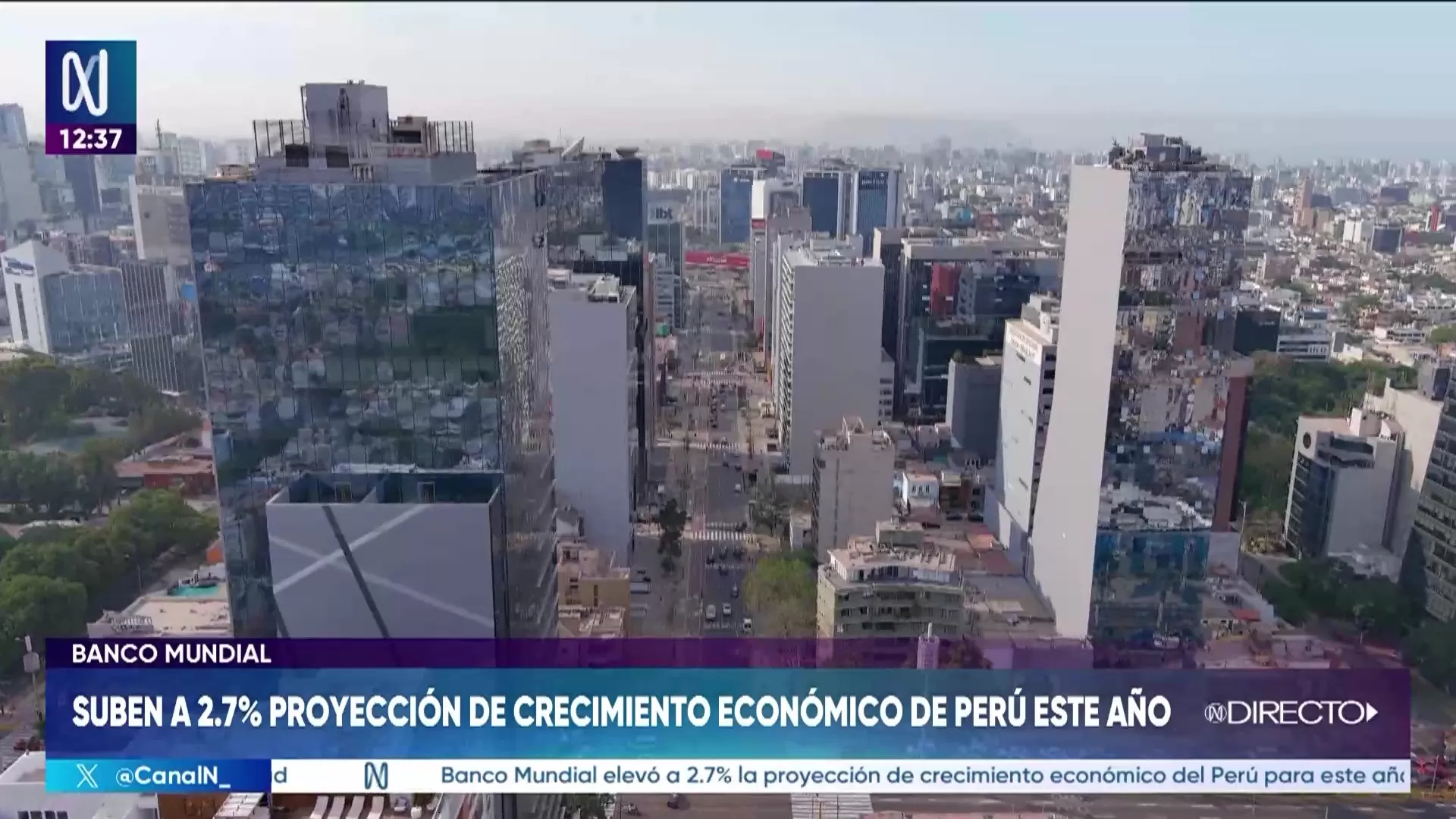 El Banco Mundial elevó a 2.7% la proyección de crecimiento económico del Perú para este año, según su más reciente informe sobre América Latina y el Caribe. Esta actualización mejora la estimación previa de 2.5%.