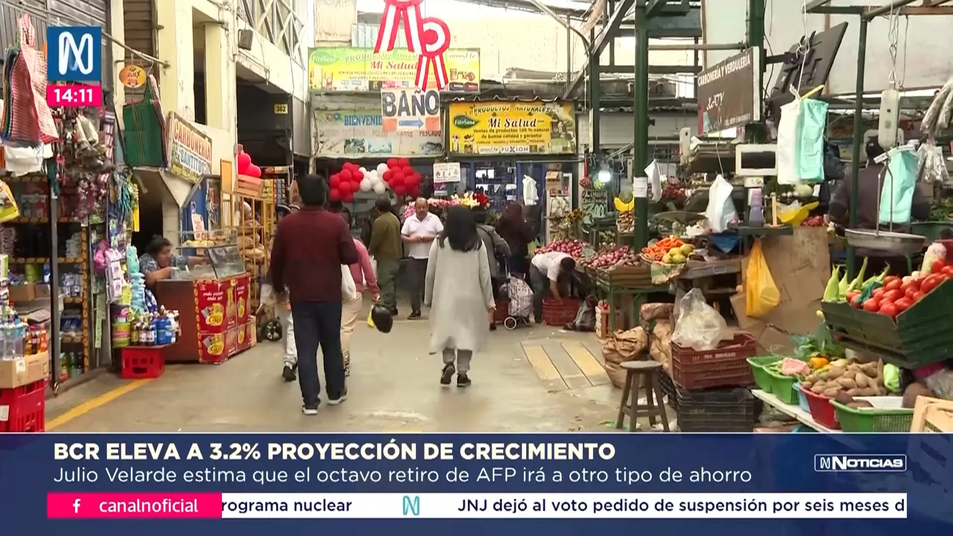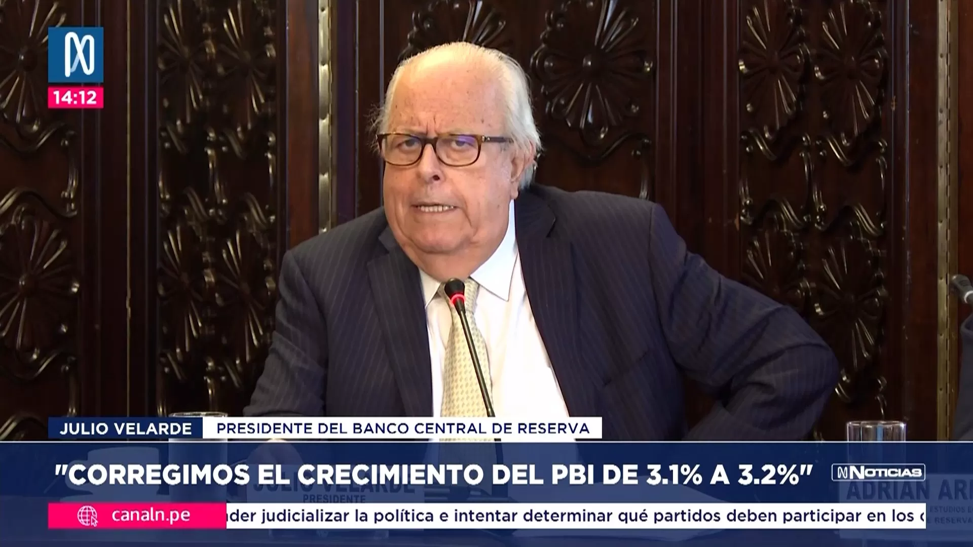 El Banco Central de Reserva elevó su proyección de crecimiento económico para el 2025 de 3.1% a 3.2%. El nuevo estimado responde al buen desempeño de la minería metálica, el sector agropecuario y el consumo interno. El BCR también reportó un crecimiento de 5.1% en el empleo formal y una expansión del 7.6% en la masa salarial. Julio Velarde indicó que no busca reelegirse como presidente del ente emisor, aunque dejó abierta la posibilidad si así lo decide el próximo gobierno. El Perú mantiene baja inflación y estabilidad macroeconómica.