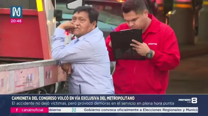 Una camioneta del Congreso se volcó esta mañana en la vía exclusiva del Metropolitano, generando congestión y paralización temporal del servicio. El vehículo, conducido por un trabajador con más de 15 años en el Parlamento, fue retirado tras la intervención de la Policía y personal de la ATU. El chofer alegó que cumplía funciones oficiales y usó la vía por una emergencia, pese a que no estaba autorizada para ese tránsito. El Congreso no se ha pronunciado oficialmente. El accidente reactivó cuestionamientos sobre el uso indebido de carriles exclusivos por parte de unidades estatales no exceptuadas por ley.