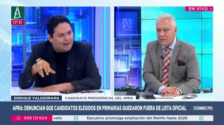 El candidato presidencial del Apra, Enrique Valderrama, negó que existan irregularidades en las listas oficiales del partido, luego de que surgieran denuncias sobre supuestas exclusiones de candidatos electos en las internas. El dirigente afirmó que el proceso se desarrolló dentro del marco legal y que los ajustes responden a la inclusión del 20% de invitados que permite el estatuto.