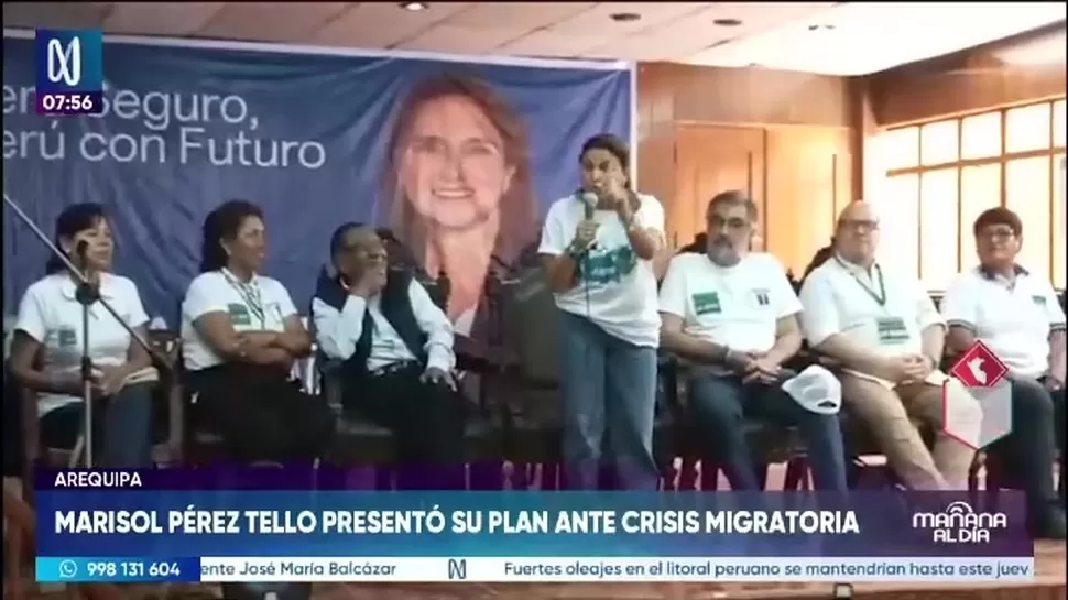 Durante su actividad en Arequipa, Pérez Tello planteó la creación de un “tren humanitario” con el objetivo de facilitar el retorno de migrantes a sus países de origen. La candidata también señaló que los migrantes que respeten las leyes y deseen trabajar tendrán espacio en el país.