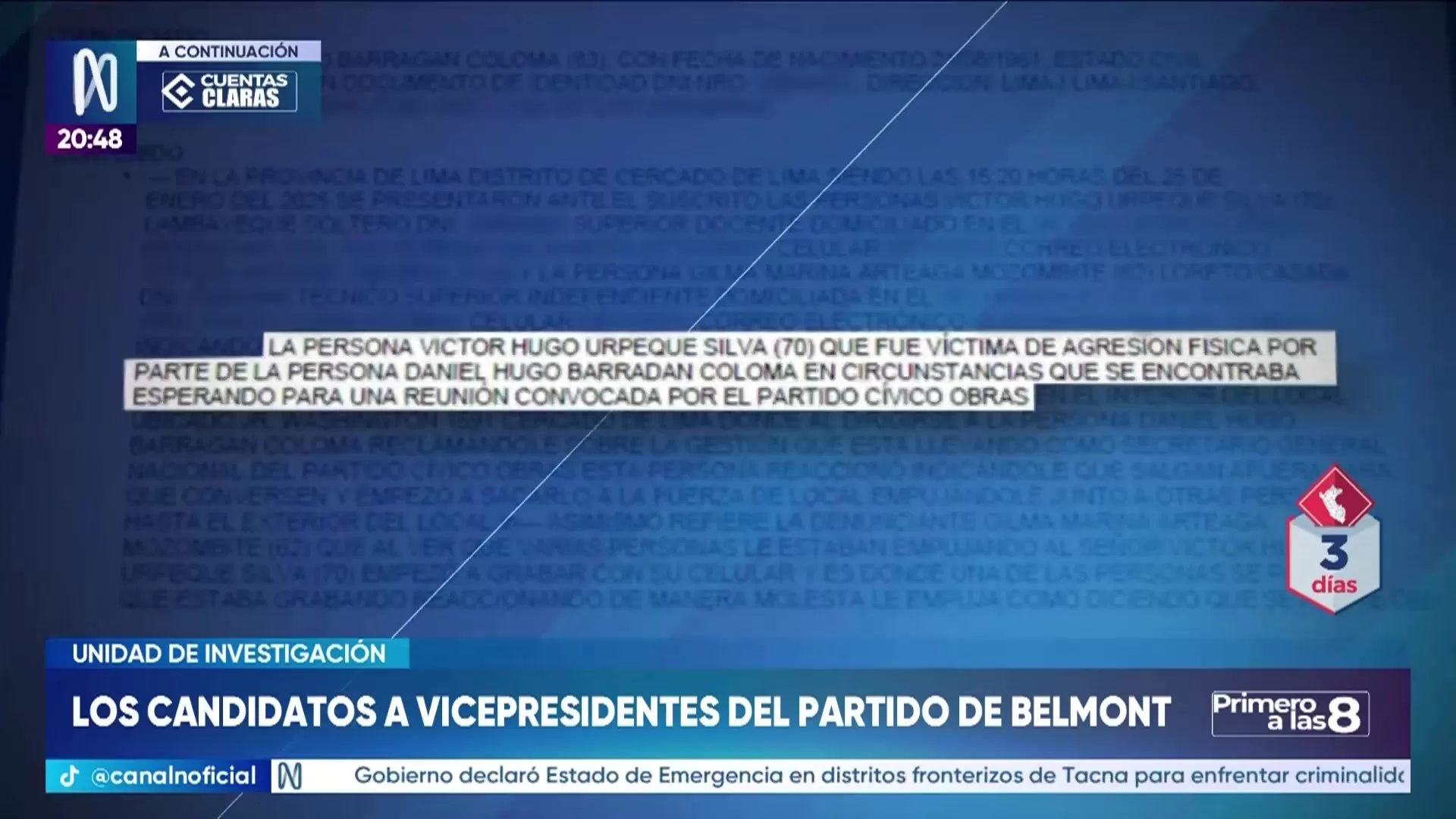 La plancha presidencial de Ricardo Belmont, líder del partido Obras, presenta a Daniel Barragán y Dina Hancco como candidatos a vicepresidentes, ambos con antecedentes polémicos. Barragán, exministro de Defensa de Pedro Castillo, mantiene vínculos con Antauro Humala y enfrentó una denuncia por agresión en 2025. Por su parte, Dina Hancco posee una sentencia de 2017 por el delito de contrabando, condenada a tres años y seis meses de prisión. Además, Hancco declaró un patrimonio superior al millón de soles en inmuebles, tras varios intentos fallidos de alcanzar cargos públicos por diversas organizaciones políticas.