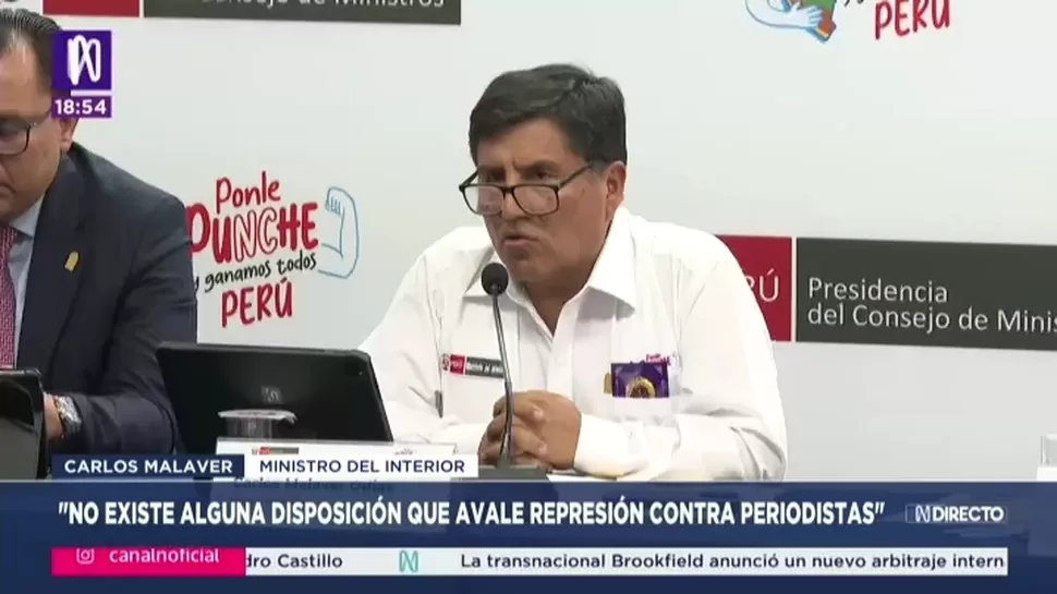 El ministro del Interior, Carlos Malaver, negó que exista alguna disposición del Ejecutivo o de la Policía Nacional del Perú (PNP) para reprimir a periodistas durante las recientes manifestaciones.