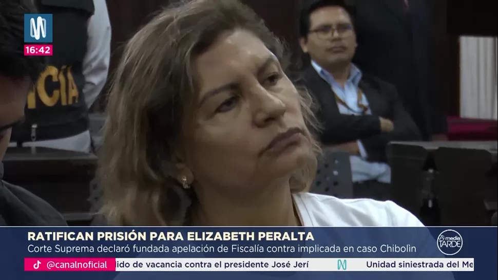 La Corte Suprema ratificó el mandato de prisión preventiva que pesa sobre la fiscal superior suspendida Elizabeth Peralta, quien es investigada por los presuntos delitos de tráfico de influencias y cohecho activo específico en el marco del denominado caso Chibolín. La decisión fue adoptada tras declarar fundado el recurso de apelación presentado por el Ministerio Público para revocar una resolución anterior que disponía el cese de la medida.