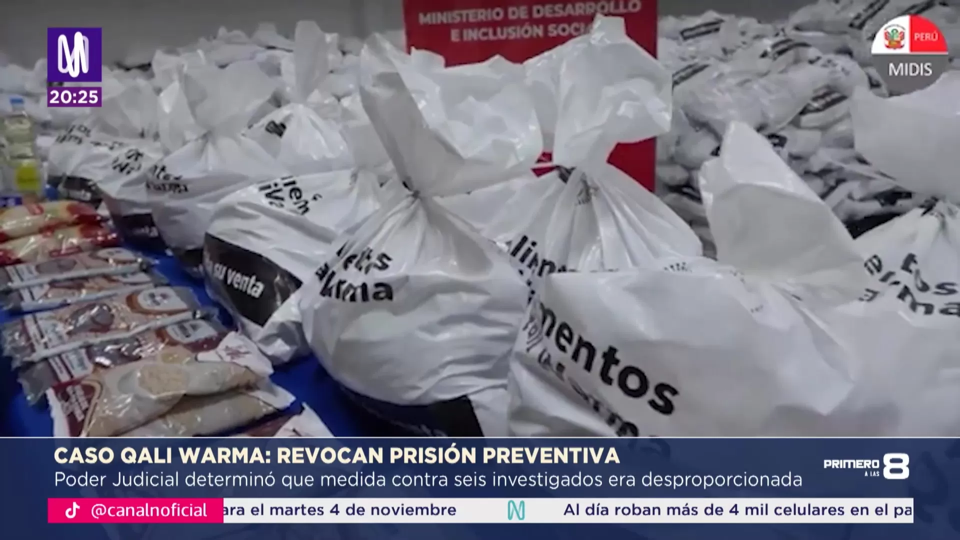 La Sexta Sala Penal de Apelaciones de Lima revocó el mandato de prisión preventiva por 36 meses dictado contra seis investigados en el caso Qali Warma, quienes ahora enfrentarán el proceso penal bajo comparecencia con restricciones. La resolución fue emitida el pasado 20 de octubre tras declarar fundadas las apelaciones presentadas por las defensas legales de los procesados.