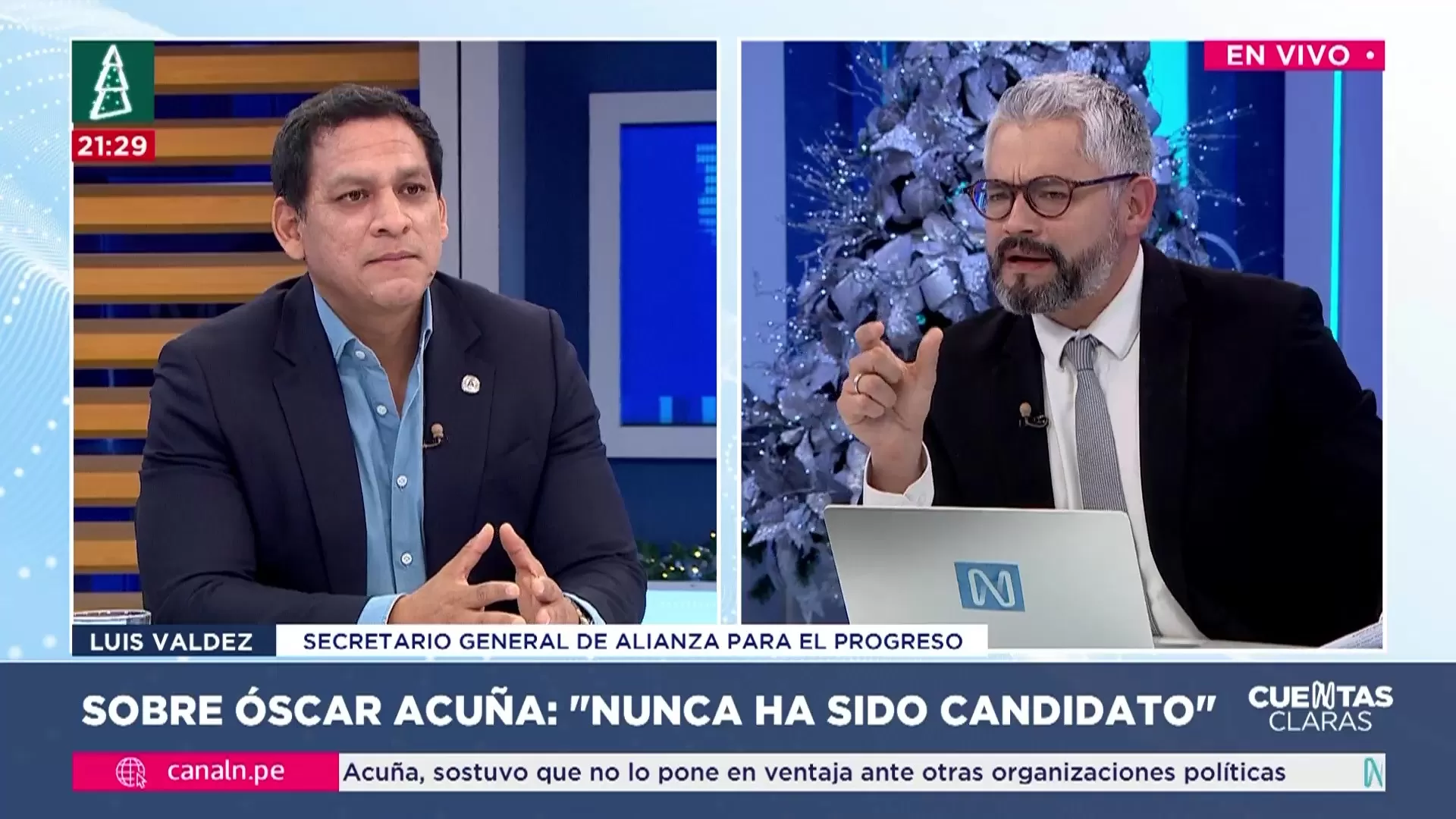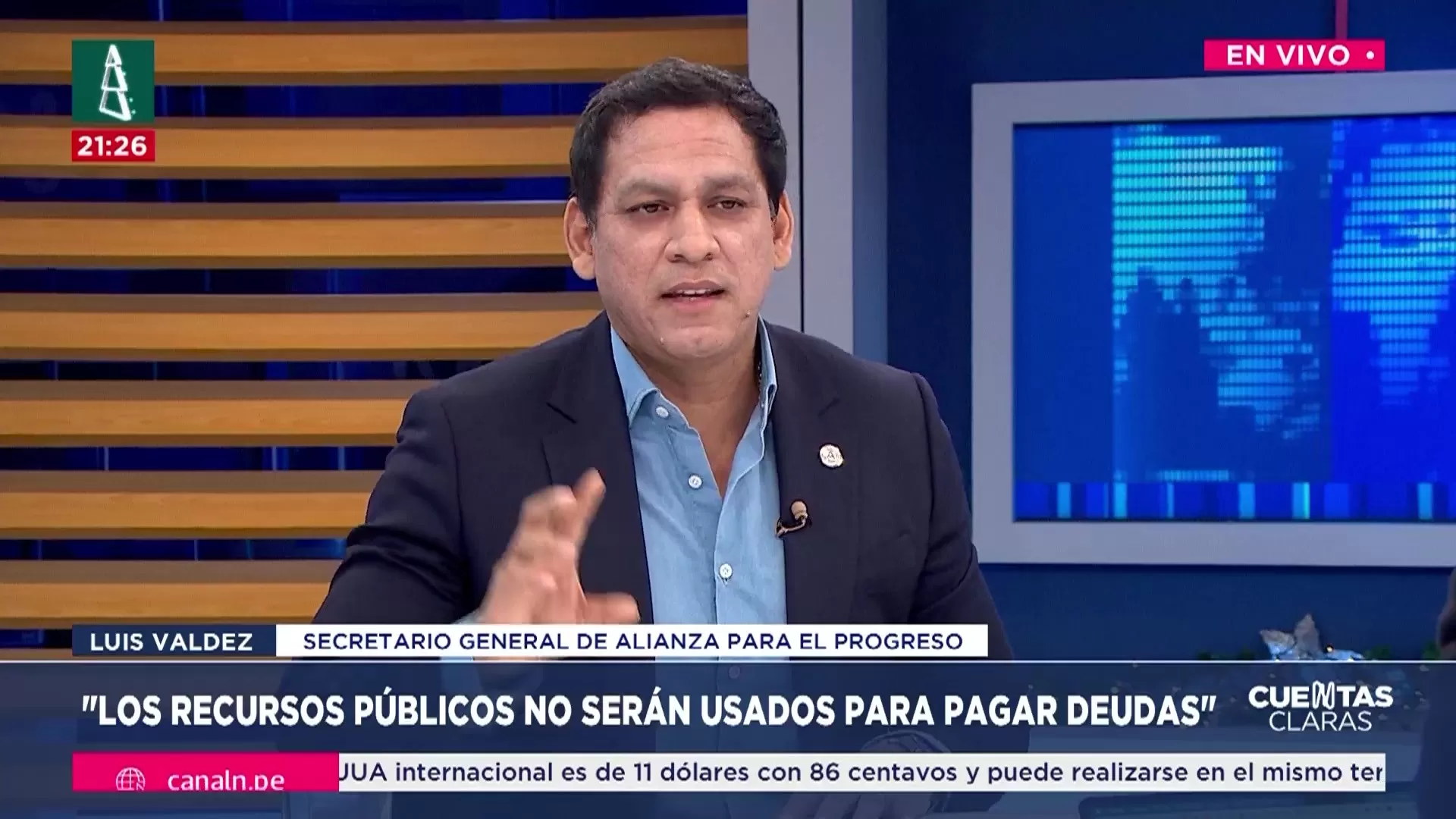 El secretario general de Alianza para el Progreso (APP), Luis Valdez, declaró que no se descarta la condonación de la deuda de 20 millones de soles que el partido mantiene con su fundador, César Acuña, y el entorno cercano del líder político. En entrevista con el programa Cuentas Claras de Canal N, Valdez defendió la legalidad de los préstamos y negó que se trate de una estrategia para evadir los topes de financiamiento establecidos por la ley electoral.