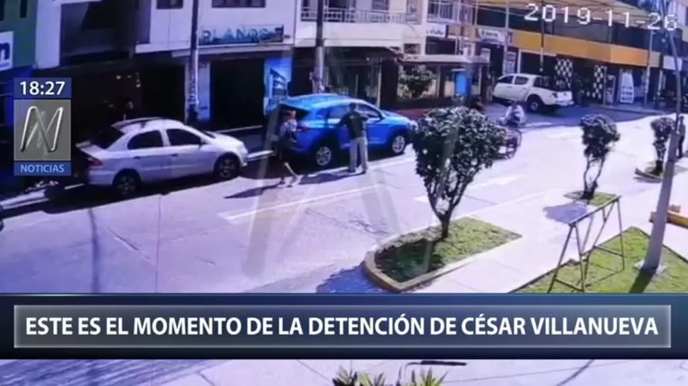Canal N accedió a las imágenes de unas cámaras de seguridad de la Municipalidad de Los Olivos que muestran el momento que agentes de División de Investigación de delitos de Alta Complejidad (Diviac) llegan al restaurante en Los Olivos, para detener al ex jefe de Gabinete, César Villanueva.