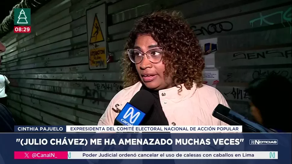 Cinthia Pajuelo, expresidenta del Comité Electoral de Acción Popular, presentó una denuncia pública contra el actual presidente del partido, Julio Chávez. Durante su declaración, la exfuncionaria responsabilizó directamente al dirigente por cualquier atentado contra su integridad física tras recibir presuntas amenazas de muerte.