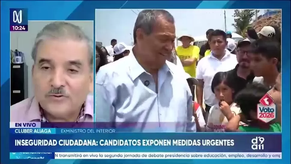 El exministro del Interior, Cluber Aliaga, señaló que los candidatos presidenciales presentan propuestas generales frente a la inseguridad ciudadana. Indicó que, según su evaluación, no existe un conocimiento profundo del problema ni de las soluciones necesarias.