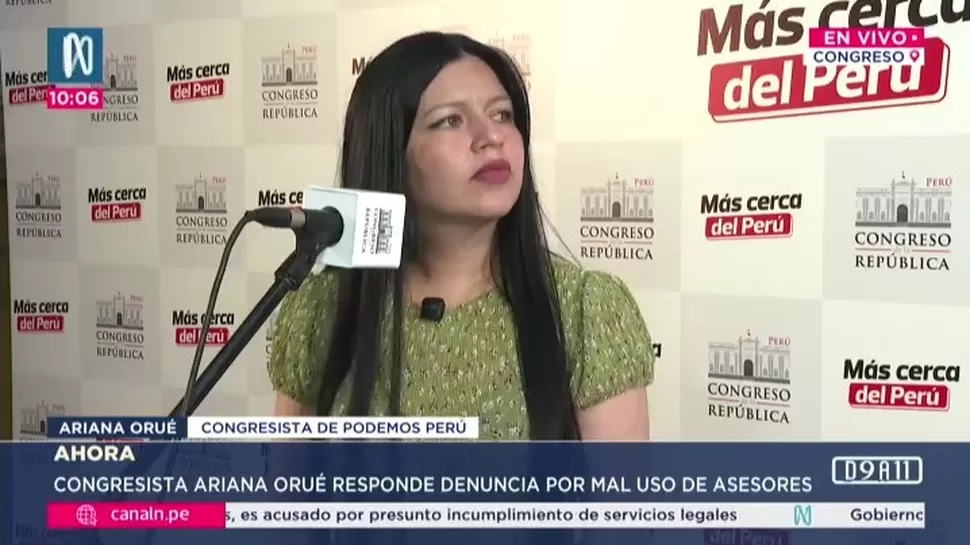 La congresista Ariana Orúe respondió a un reportaje emitido por el programa Cuarto Poder, en el que fue captada trasladándose en un vehículo junto a su coordinador parlamentario.
