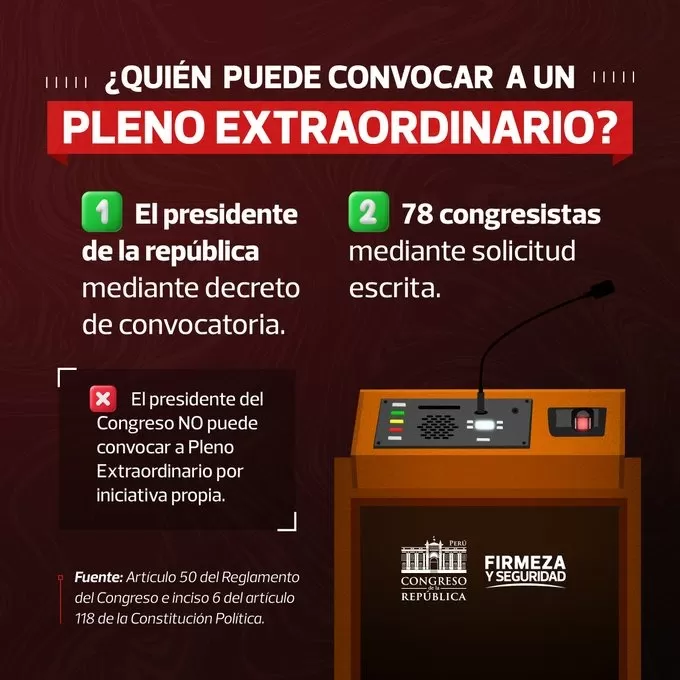 El debate en el pleno extraordinario abordará estos hechos en el marco de las mociones de censura y vacancia. La convocatoria dependerá de la decisión que adopte la presidencia del Congreso dentro del plazo correspondiente.