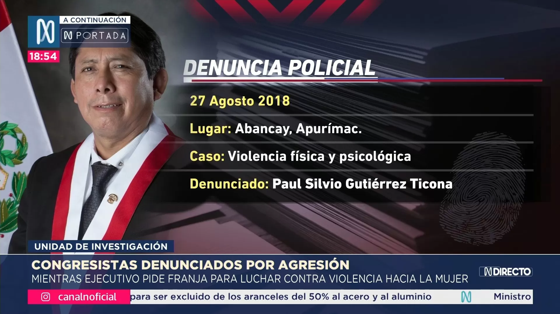 Paul Silvio Gutiérrez Ticona, actual congresista del Bloque Magisterial, fue denunciado el 27 de agosto de 2018, en Abancay (Apurímac), por violencia física y psicológica.
