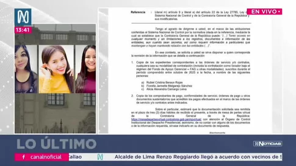 La Contraloría General de la República solicitó a la Presidencia de la República la remisión de documentación vinculada a las contrataciones de jóvenes que habrían obtenido órdenes de servicio en entidades del Estado. El requerimiento se da en el marco de las atribuciones del Sistema Nacional de Control.