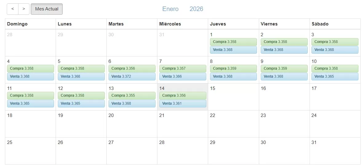 Según datos oficiales de la SUNAT para este miércoles 14 de enero del 2026, el dólar se cotiza en S/ 3.356 para la compra y S/ 3.361 para la venta. Estos valores son utilizados como referencia en operaciones tributarias, aduaneras y contables en todo el país, y se actualizan diariamente para garantizar transparencia en las transacciones oficiales.