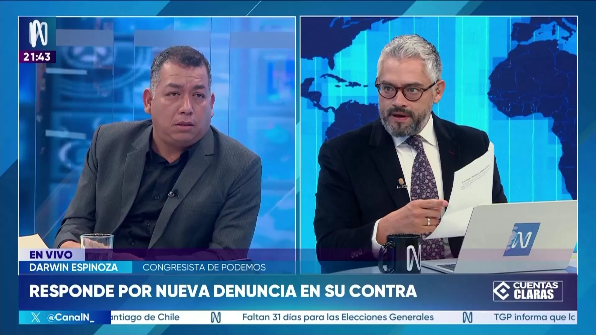 El ciudadano Aldo Sebastián Robles denunció a Darwin Espinoza por una presunta agresión física ocurrida el miércoles en La Rambla, en San Borja. Según ese testimonio, el incidente se produjo luego de que se acercara al congresista para reclamarle por su gestión.