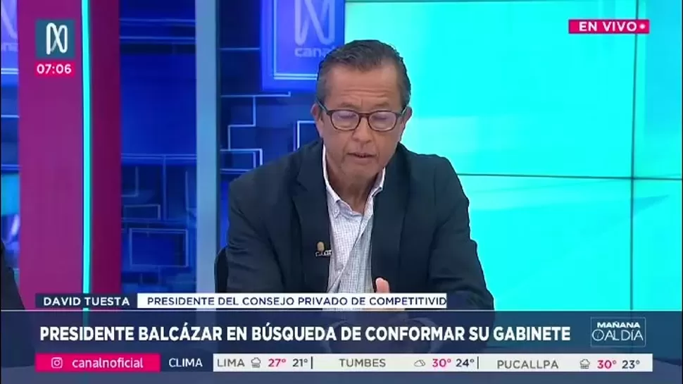 El presidente del Consejo Privado de Competitividad, David Tuesta, afirmó que la presencia de José María Balcázar en la Presidencia de la República, acompañado de Vladimir Cerrón, envía señales negativas.