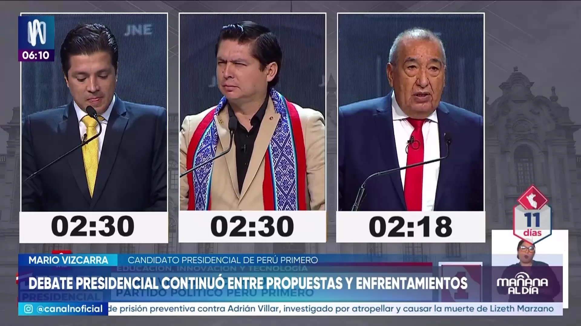 Durante la jornada de debate, los aspirantes a la presidencia expusieron medidas sobre formalización minera, vivienda y reformas en el sector educativo