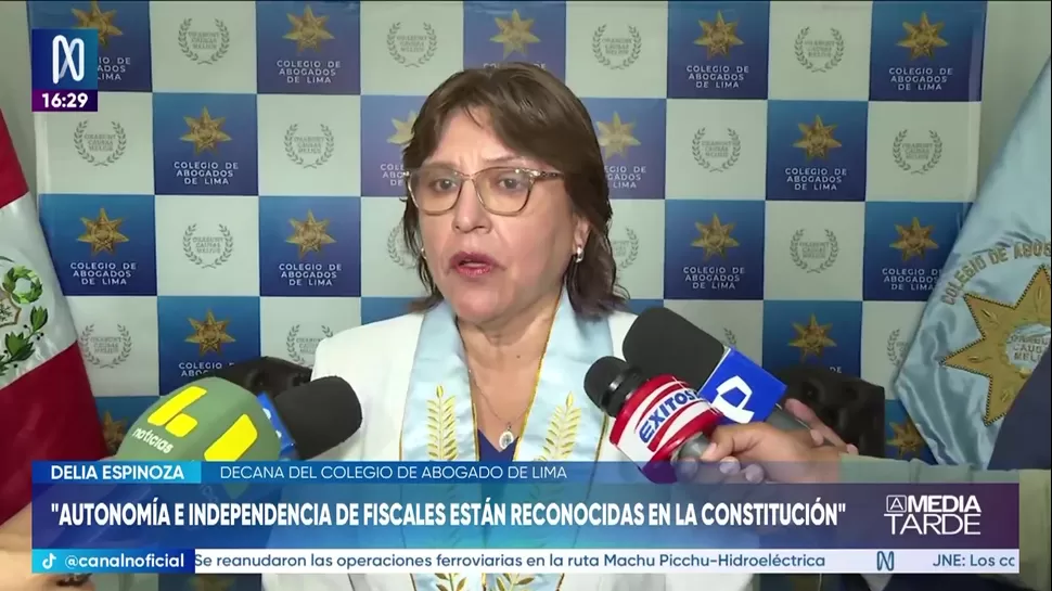 La decana del Colegio de Abogados de Lima (CAL), Delia Espinoza, se pronunció sobre el proyecto de nueva ley orgánica del Ministerio Público, sustentado ante el Congreso por el fiscal de la Nación, Tomás Gálvez.