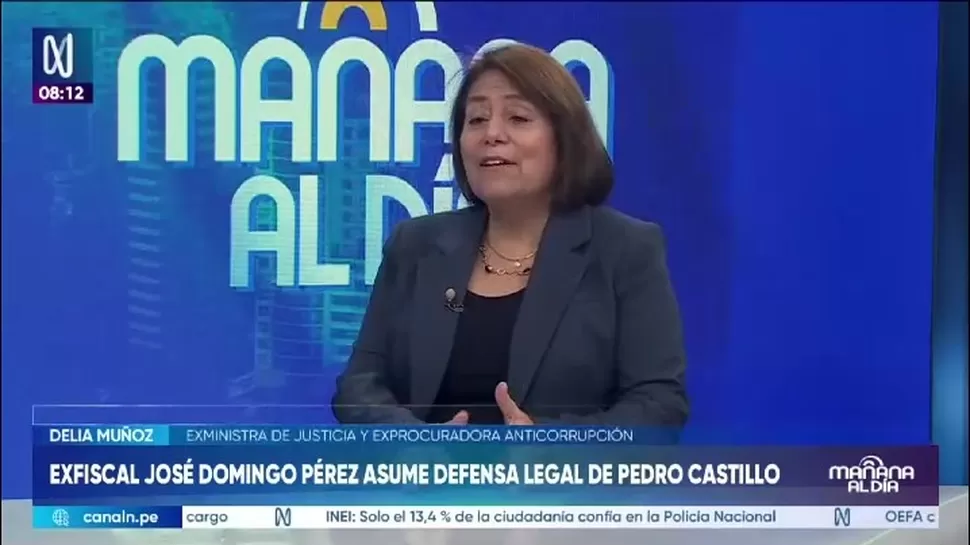 La exministra de Justicia y exprocuradora anticorrupción, Delia Muñoz, analizó la incorporación del exfiscal José Domingo Pérez a la defensa legal del expresidente Pedro Castillo, en el marco de una estrategia que incluye acciones en instancias internacionales.