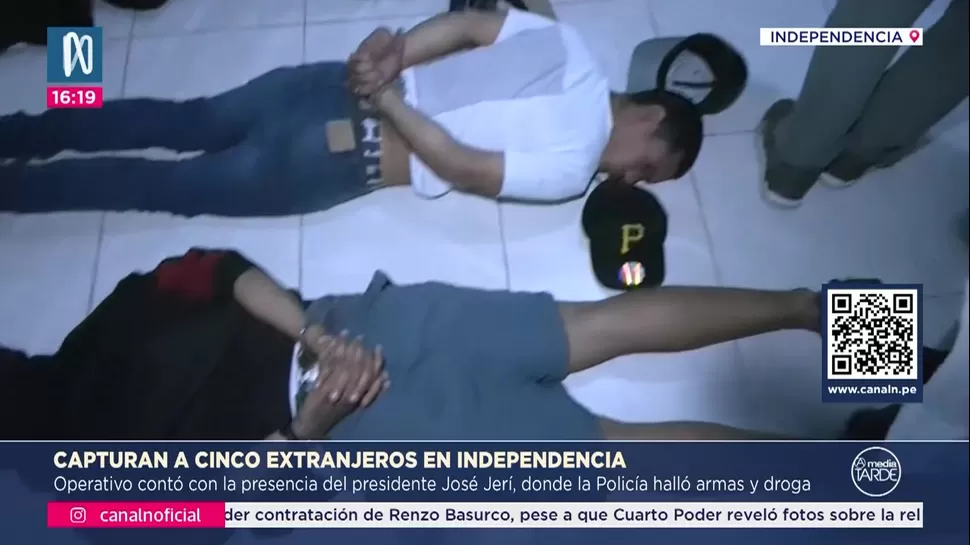 Cinco ciudadanos venezolanos fueron detenidos por la Policía Nacional del Perú (PNP) durante un operativo ejecutado en una vivienda ubicada en el distrito de Independencia. En el lugar se incautaron armas de fuego, marihuana, municiones, dos motocicletas y dinamita. La intervención contó con la presencia del presidente José Jerí, quien recibió detalles del procedimiento y los indicios encontrados.