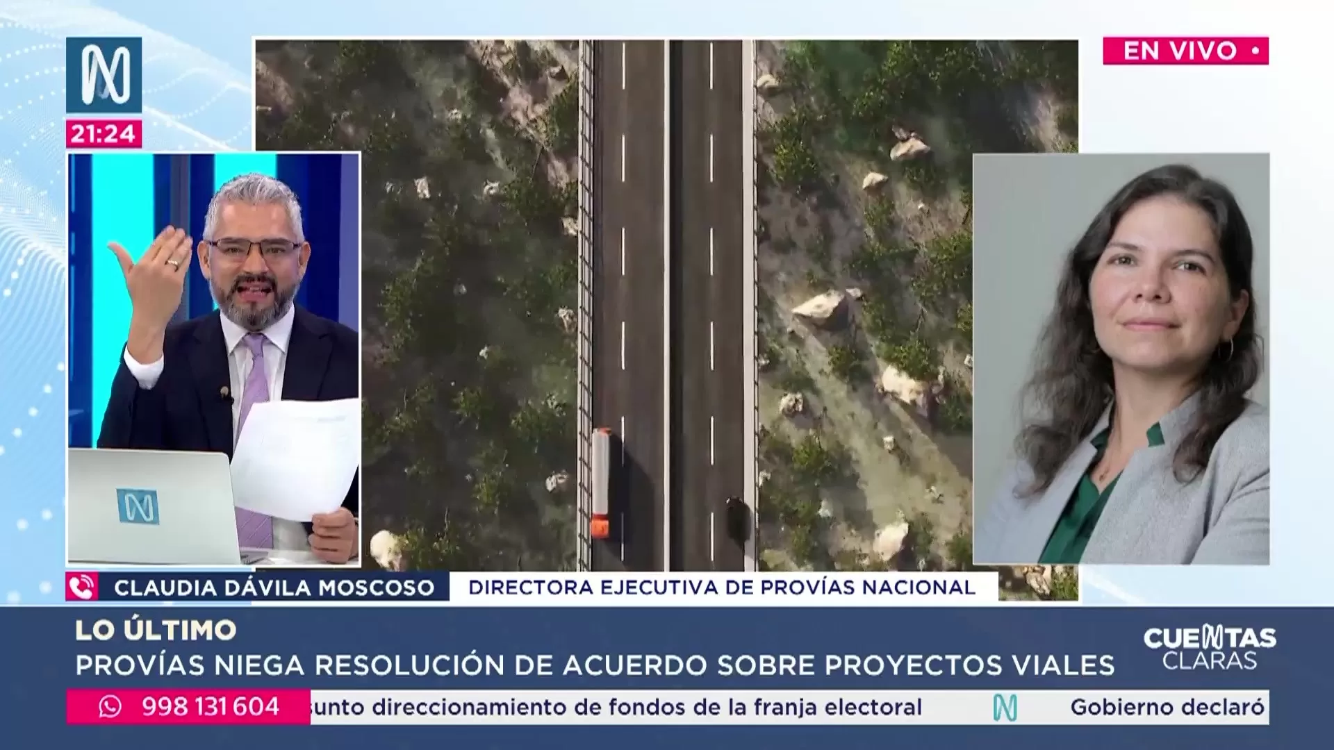 En entrevista con Canal N, Claudia Dávila precisó que los contratos de la Carretera Central, la Vía Expresa Santa Rosa y el puente Santa Rosa continúan vigentes y en ejecución.