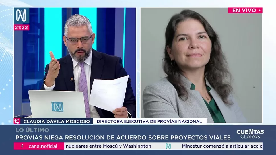 Claudia Dávila confirmó que Provías Nacional resolvió el contrato con EGIS, empresa que brindaba asistencia técnica para la Nueva Carretera Central, la Vía Expresa Santa Rosa y el Puente Santa Rosa.