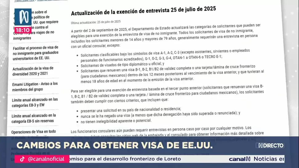 El Departamento de Estado de Estados Unidos dispuso un cambio en los requisitos para obtener visa a partir del 2 de septiembre. Desde esa fecha, los menores de 14 años y los adultos mayores de 79 deberán acudir a una entrevista presencial en la embajada de ese país en Lima para completar el trámite.