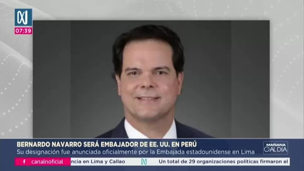 La Embajada de los Estados Unidos confirmó la designación de Bernardo Navarro como embajador en el Perú luego de recibir la ratificación del Senado