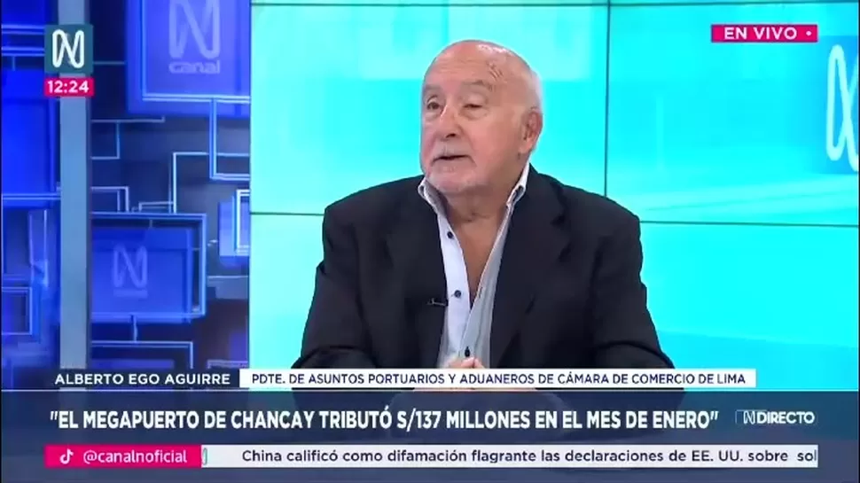 El presidente de asuntos portuarios de la Cámara de Comercio de Lima, Alberto Ego Aguirre, defendió el carácter privado del megapuerto de Chancay y cuestionó la posibilidad de que Ositrán regule sus tarifas, en medio del debate sobre el fallo judicial y los pronunciamientos internacionales.