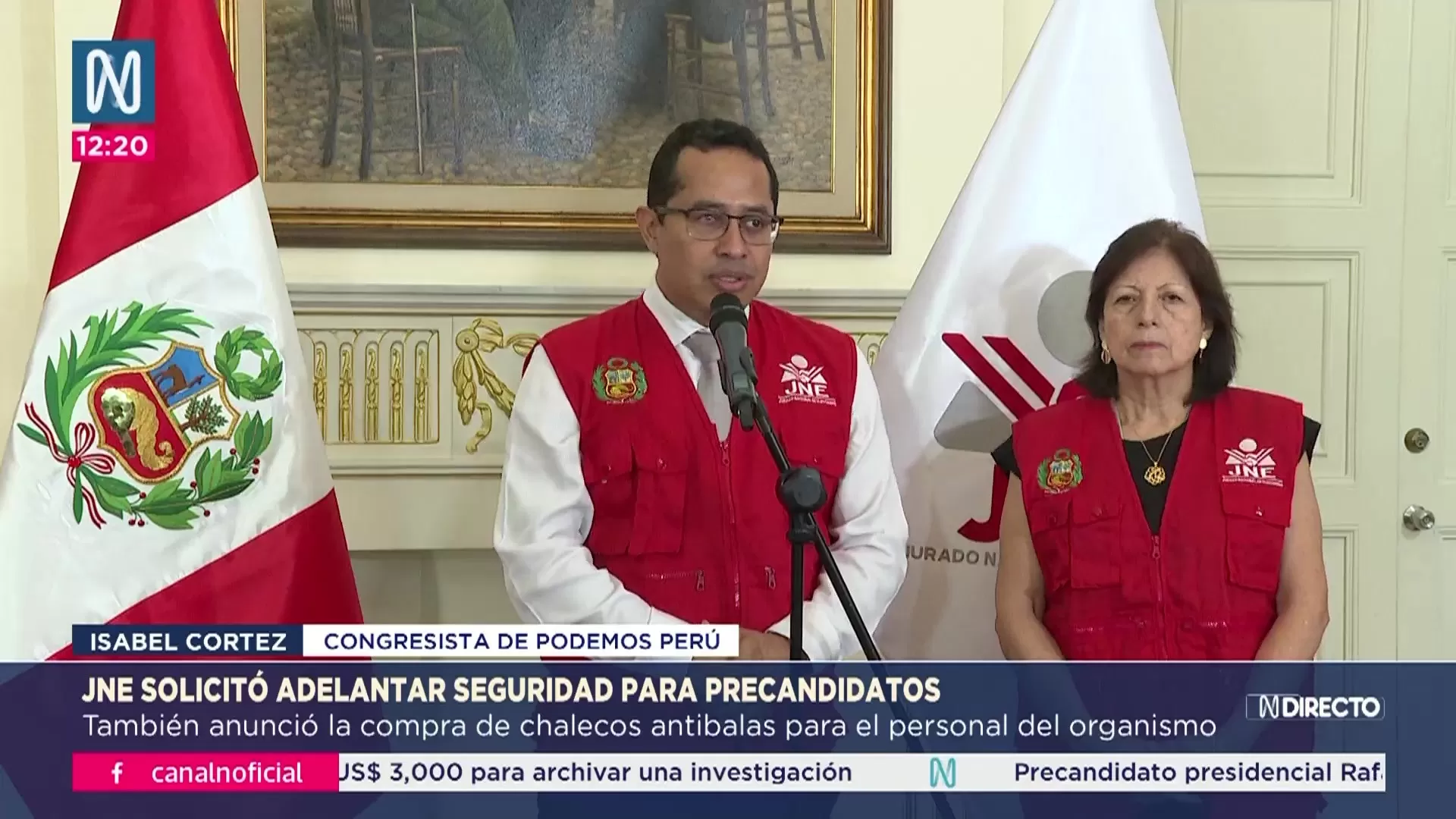 Como parte de las acciones de prevención interna, Burneo anunció que el Jurado Nacional de Elecciones está en proceso de adquirir chalecos antibalas para su personal, enfatizando que no se puede escatimar en medidas de protección.