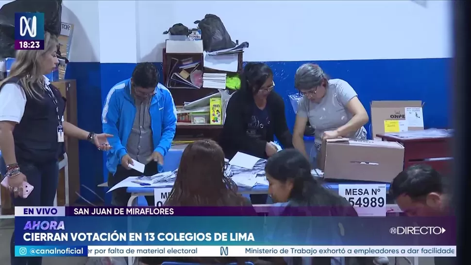 La jornada de votación excepcional en 13 colegios de Lima concluyó a las 18:00 horas, tras la disposición del JNE por las fallas logísticas del domingo. La ONPE reportó que 52 251 ciudadanos fueron convocados luego de que 187 mesas no se instalaran debido al incumplimiento de una empresa transportista. Se registraron incidentes en Pachacámac, donde se impidió el acceso a la prensa y ciudadanos quedaron fuera del local por escasos segundos. El conteo de votos se realiza bajo vigilancia de la Defensoría del Pueblo para concluir oficialmente el proceso de las elecciones generales.