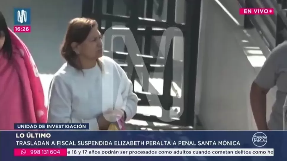Elizabeth Peralta, fiscal suspendida, fue trasladada este miércoles al penal de mujeres de Santa Mónica tras entregarse voluntariamente a las autoridades judiciales. La medida fue ejecutada en cumplimiento de la orden emitida por el Juzgado Supremo de Investigación Preparatoria.