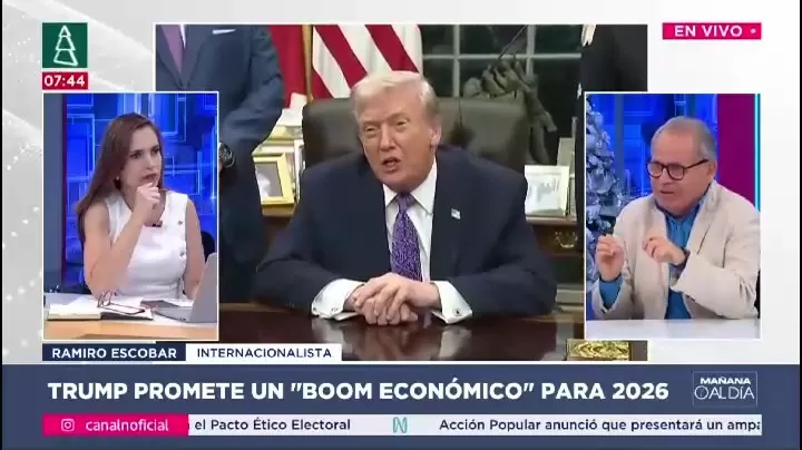 Indicó que Trump intenta proyectar optimismo económico a través de anuncios simbólicos, como un bono de 1,776 dólares para militares, en alusión al aniversario de la independencia de Estados Unidos en 2026. Según Escobar, este tipo de gestos reflejan más una situación de debilidad política que de estabilidad.