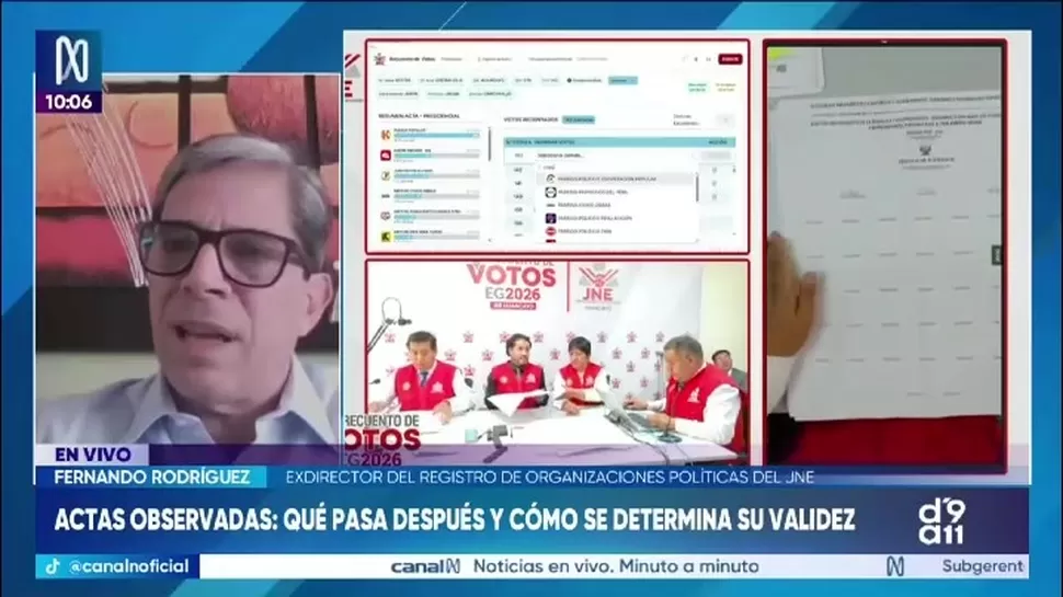Fernando Rodríguez, exdirector del Registro de Organizaciones Políticas del JNE, cuestionó el tiempo estimado para la resolución de las actas observadas.
