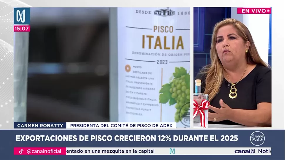 El pisco, como denominación de origen del Estado peruano, mantiene una tendencia positiva en los mercados internacionales. La presidenta del Comité de Pisco de ADEX, Carmen Robatty de Moquillaza, informó en Canal N que las exportaciones de esta bebida registraron un crecimiento del 12% entre enero y noviembre de 2025, con Estados Unidos, España y Países Bajos como principales destinos.