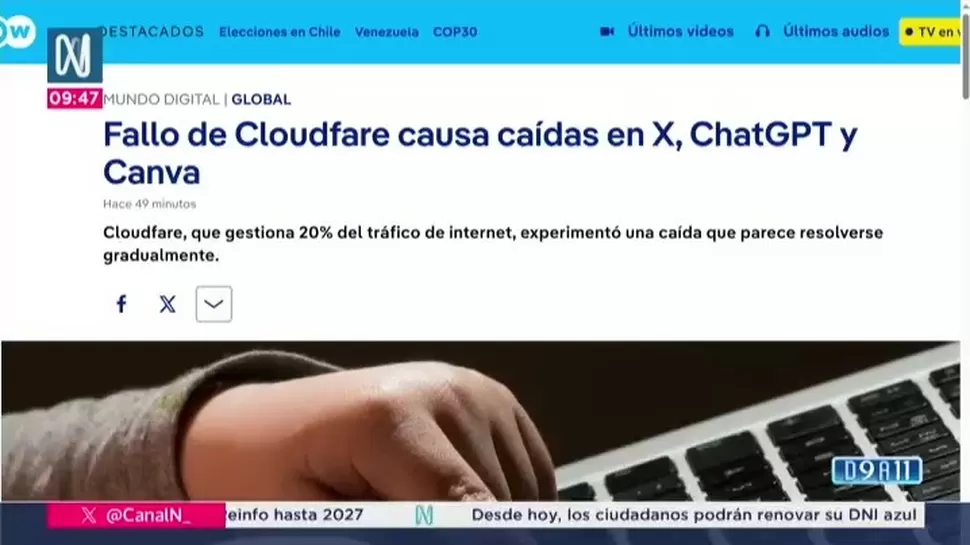 La interrupción en la red de Cloudflare afectó a plataformas como X, ChatGPT, Canva y Grindr