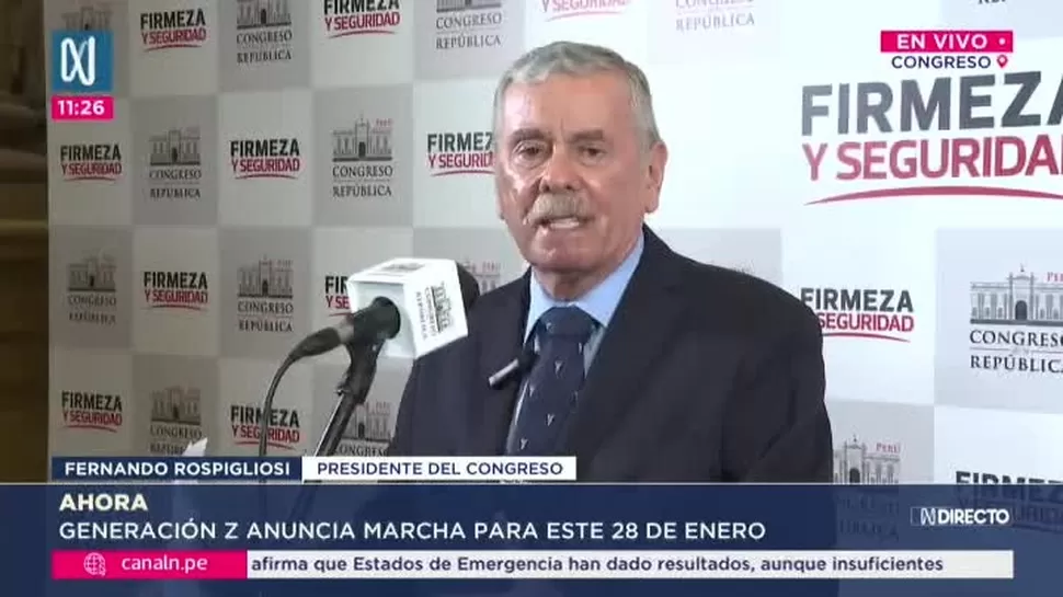 El presidente del Congreso, Fernando Rospigliosi, se pronunció sobre la marcha convocada para el 28 de enero y aseguró que sus promotores intentan repetir la estrategia de desestabilización que —según afirmó— ya se empleó en 2020 para tomar el poder de manera irregular.