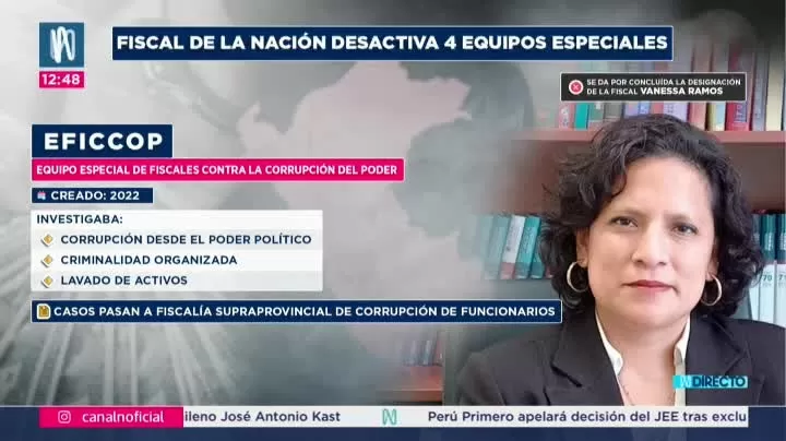 La Resolución N.º 008-2026-MP-FN concluyó el trabajo del Eficcop, encargado de indagar presuntas irregularidades cometidas por altos funcionarios del Estado, como ministros, congresistas y expresidentes. Su coordinadora, Vanessa Díaz Ramos, fue retirada del cargo junto a los fiscales Julio Ormeño Peves y Gunther Cornejo Gonzáles.