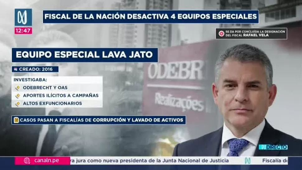 Mediante la Resolución N.º 007-2026-MP-FN, se dispuso la disolución del Equipo Especial Lava Jato, activo desde 2016 para investigar casos vinculados a Odebrecht. Su coordinador, Rafael Vela Barba, quedó fuera de la estructura, y el fiscal José Domingo Pérez no fue incluido en ninguna reasignación.