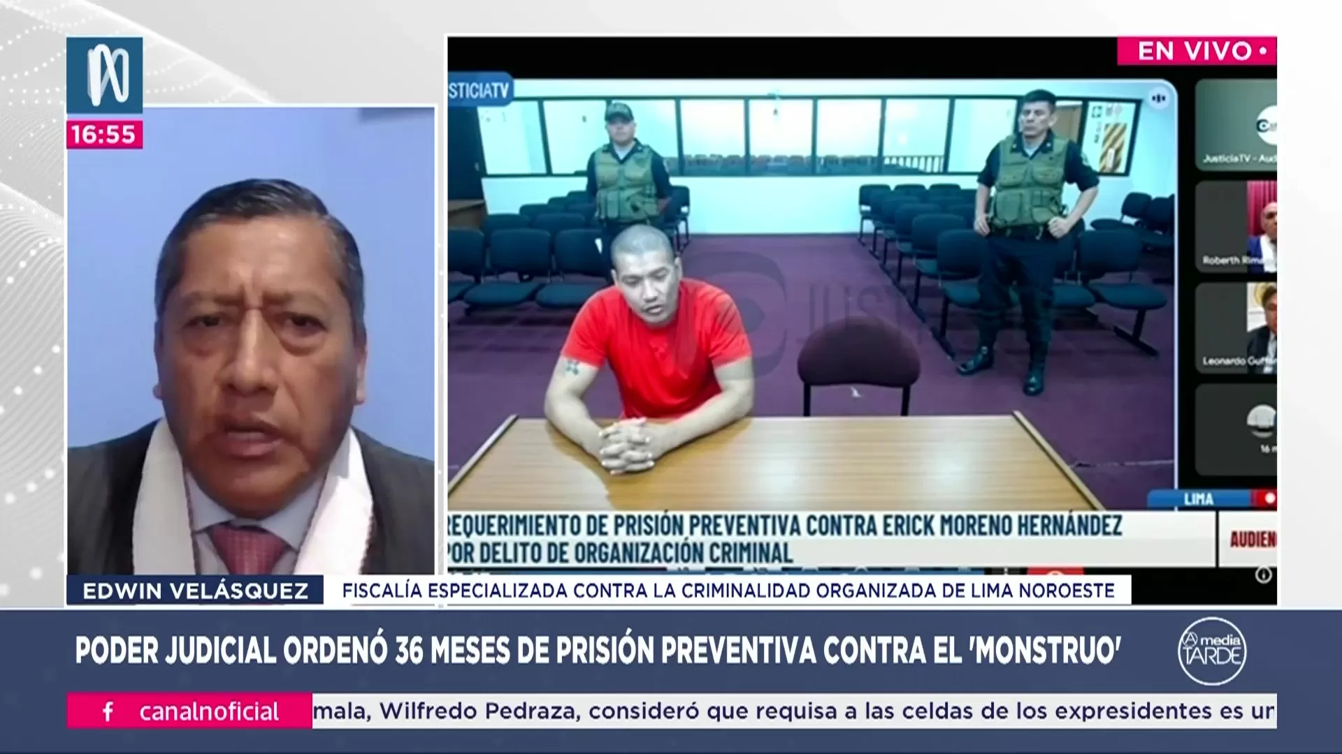 La Fiscalía estimó que Erick Moreno, alias “El Monstruo”, podría recibir cadena perpetua tras la ampliación de la investigación penal en su contra, luego de que el Poder Judicial dictara 36 meses de prisión preventiva. La información fue brindada por el fiscal Edwin Velásquez durante una entrevista en Canal N.