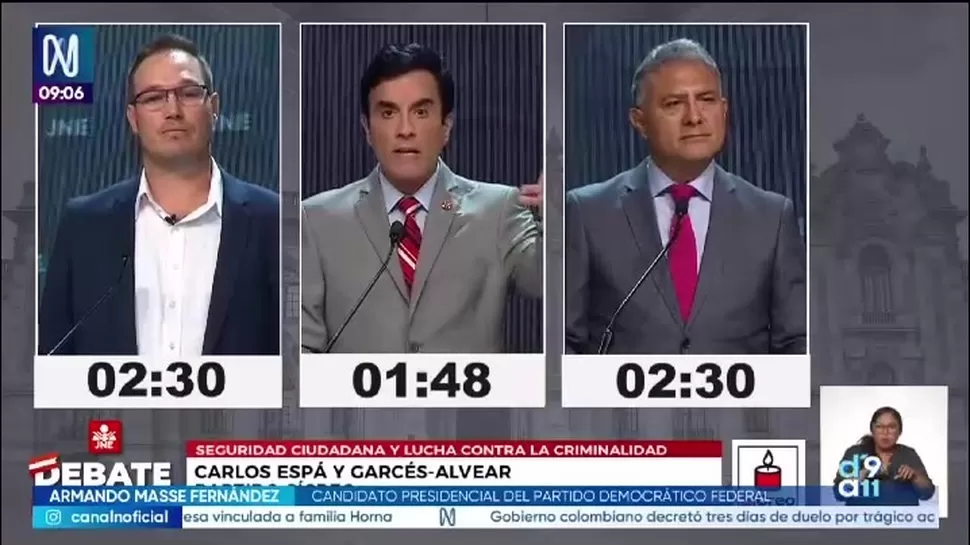 En el bloque de seguridad, los candidatos plantearon medidas como pacificar el país frente a la criminalidad y la corrupción en determinados plazos.